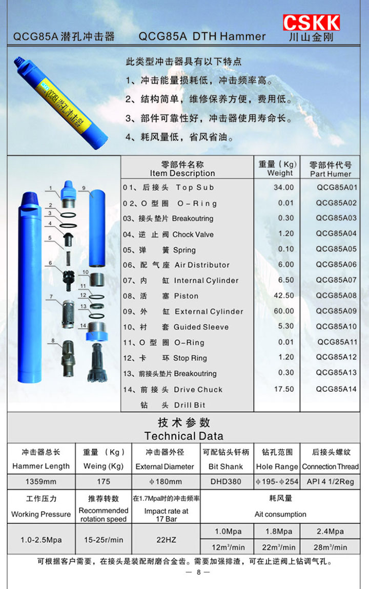 此類型沖擊器具有以下特點: